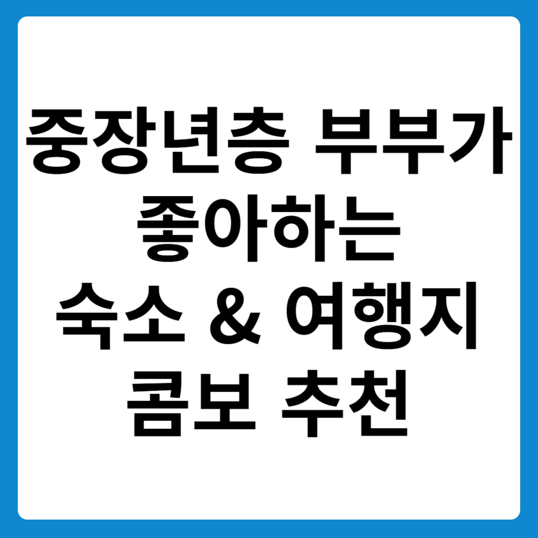이번 글에서는 중년 부부가 함께 즐길 수 있는 숙소 & 여행지 콤보 베스트 추천을 소개합니다.