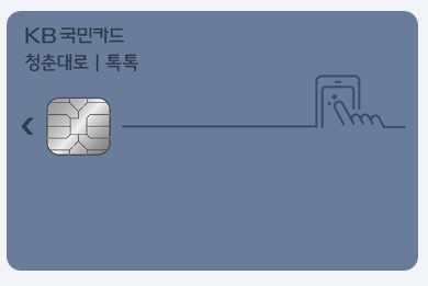 | KB 청춘대로 톡톡카드 | 1만 원 | 30만 원 이상 | 카페 50%, 패스트푸드 20%, 교통/통신 10% | 2.5만 원 |